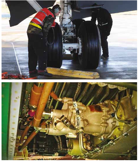 Phosphate-ester-based synthetic fluids are commonly used in modern aircraft due to their fire resistance and wide operating temperature range. Skydrol and Hyjet are the most commonly used hydraulic fluids.
