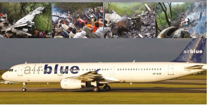 On July 28, 2010, at 09:41 local time, an Air Blue airline A321 jet-powered passenger aircraft with tail number AP-BJB, arriving from Karachi, crashed into a mountain while approaching Islamabad, the capital of Pakistan. All onboard — two pilots, four cabin crew members, and 146 passengers — lost their lives. There was no technical fault found on the aircraft in this accident.