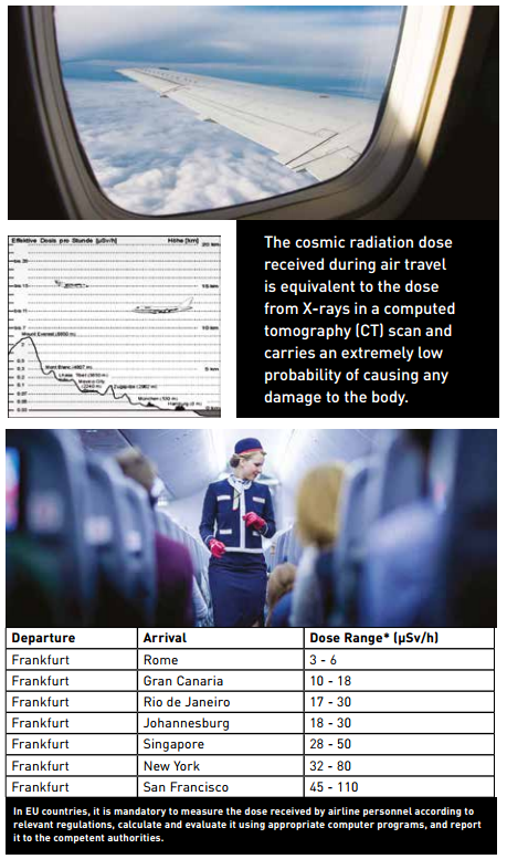 According to European Union (EU) regulations, for aircrew whose annual dose may exceed 1 mSv, body doses must be determined with ‘dosimeters,’ evaluated, and preventive measures taken if necessary. Aircrew, like nuclear reactor personnel or doctors working with X-ray devices, are classified as ‘radiation workers,’ trained on the effects of radiation on the body, and therefore the annual dose limit of 20 mSv applies to them as well. In EU countries, aircrew doses must be measured according to relevant regulations, calculated and evaluated with appropriate computer programs, and reported to the competent authorities. .