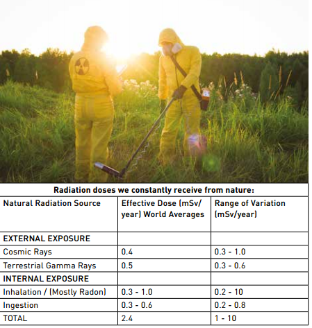 As seen in Table 2, the annual average radiation dose of 2.4 mSv varies greatly between 1 and 10 mSv, and half of the average dose comes from radon gas, a decay product of radioactive materials (uranium and thorium) in the Earth’s crust. Cosmic rays also contribute more to the radiation dose for people living at high altitudes and during air travel, as can be seen from Figure 1 and the table above. .