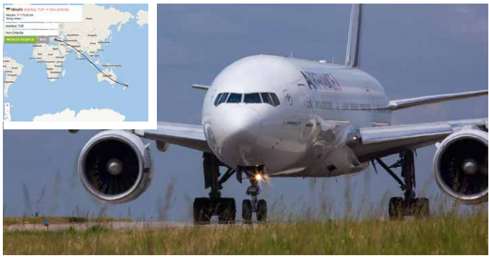 In general, the Boeing 777 is a long-range aircraft capable of flying nonstop on intercontinental routes. It can typically cover approximately 9,395 nautical miles (17,395 kilometers) without refueling. For example, the route from Istanbul New Airport to Auckland International Airport in New Zealand is 17,173 km. However, the specific range may vary depending on the factors mentioned above.
