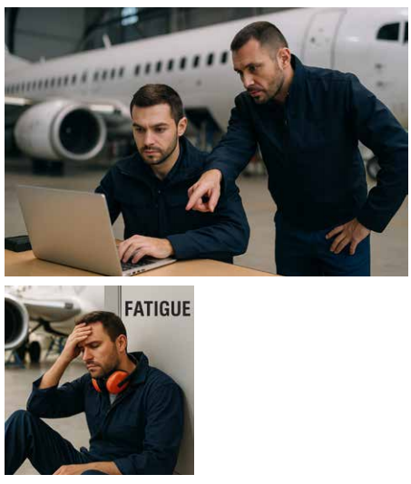“Expectation See”: Fatigue narrows perception. Technicians are more likely to see what they expect to see rather than what is actually there, a phenomenon that can cause them to miss a crack, a loose connection, or an installed-but-not-safetyed component.